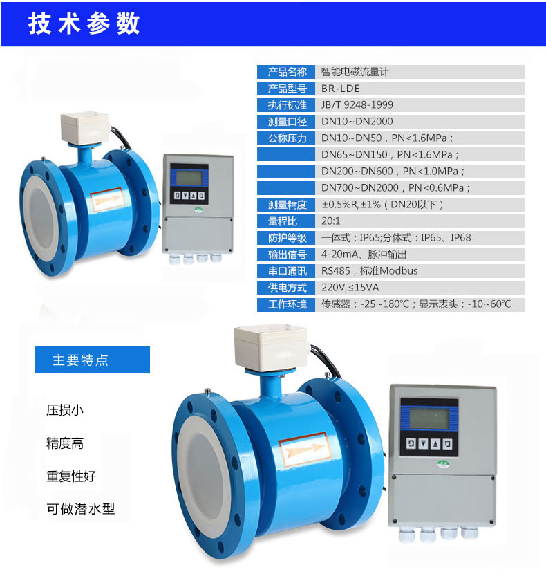 分体式电磁流量计主要用于测量封闭管道中的导电液体和浆液中的体积流量。如水、污水、泥浆、纸浆、各种酸、碱、盐溶液、食品浆液等,应用于石油、化工、冶金、纺织、食品、制药、造纸等行业以及环保、市政管理,水利建设等领域。