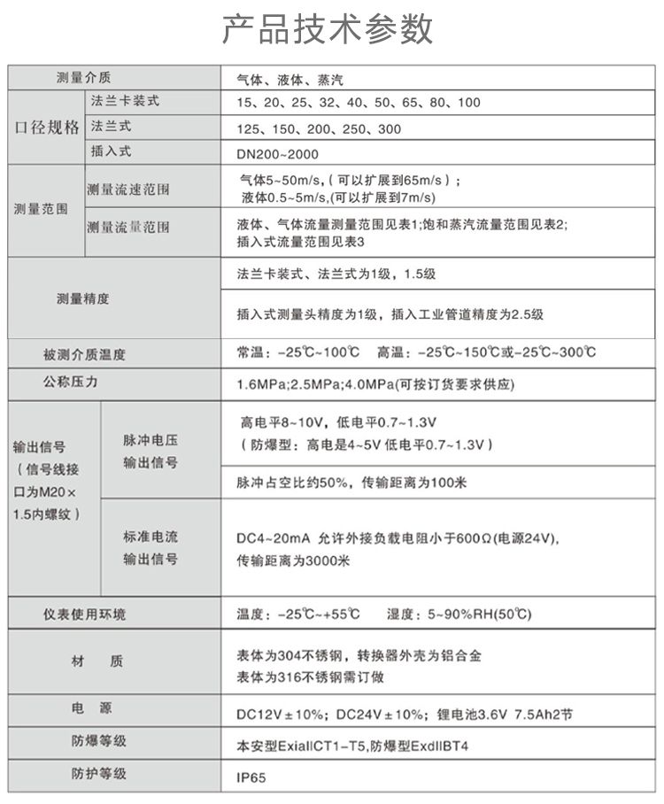 | 精度等级 | 液体:±1.0%R; 气体/蒸汽:±1.5%R ; 部分高精度产品可达 ±0.5% |