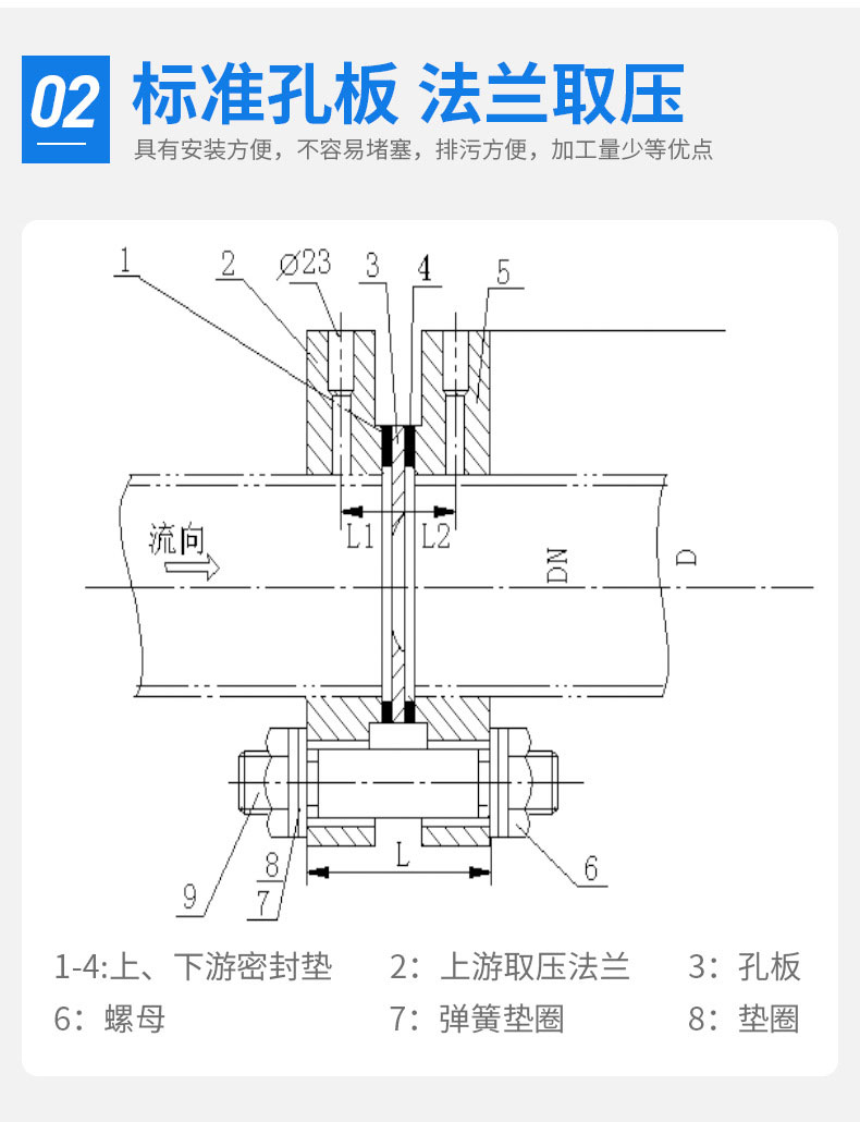 2. 安装方向与同心度:可以水平、垂直或倾斜安装,但需确保管道内始终充满被测介质 。孔板的中心必须与管道中心线同轴,密封垫片不能突入管道内,以免干扰流场 。