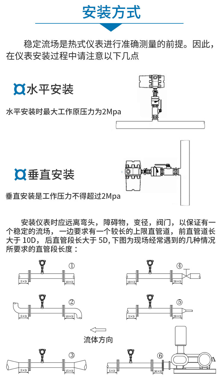 ①一体型插入式应插入至被测管路轴心,所以,测量杆长度视被测管径大小而定,定货时