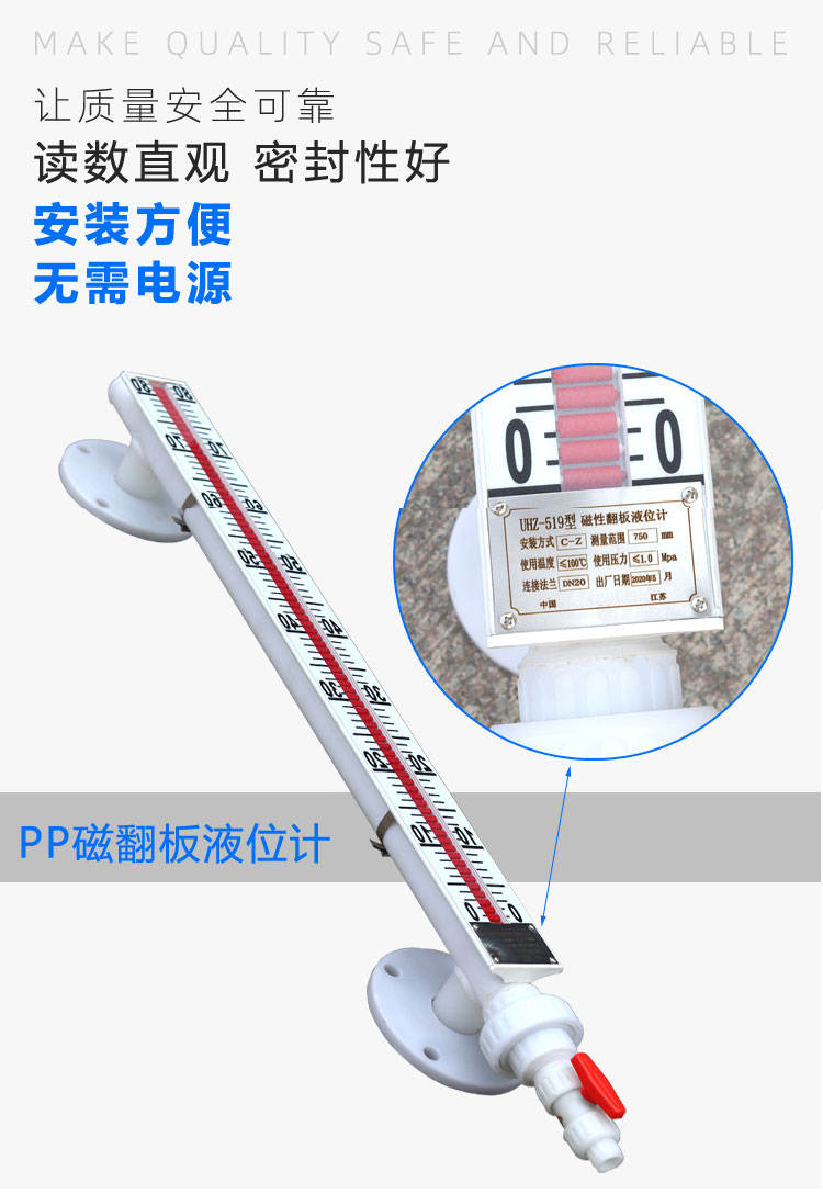 PP防腐磁翻板液位计,简单来说,就是用聚丙烯(PP)这类塑料材料制作的、**用来测量腐蚀性液体液位的仪表。它主要利用磁耦合原理工作,因为PP材料本身*异的耐腐蚀性能,所以特别适合化工、水处理等行业中,测量那些会腐蚀普通不锈钢的酸、碱、盐溶液 。