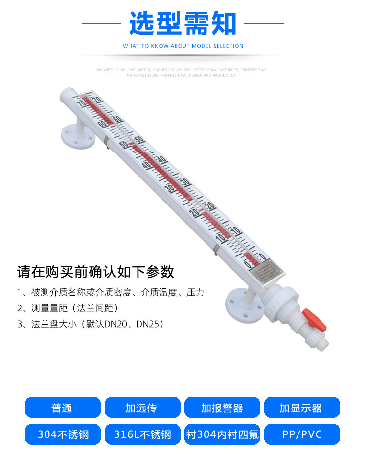 | 适用介质密度 | 需 ≥ 0.5 g/cm³(即500 kg/m³) 。 | 密度过低浮子无法浮起 |