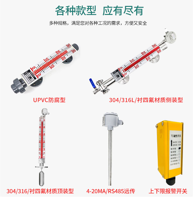 - 功能扩展性*:在基本型的基础上,可以方便地加配液位远传变送器和液位控制开关,实现液位的远程监控、报警和自动控制。