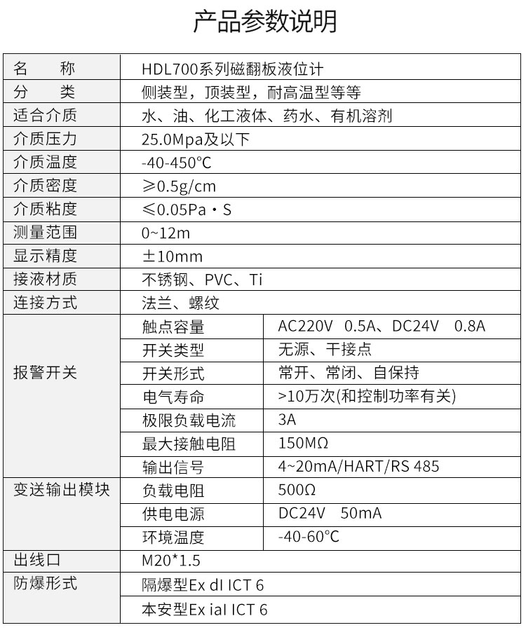 不同型号和厂家的液位计参数略有差异,但**涵盖以下范围: