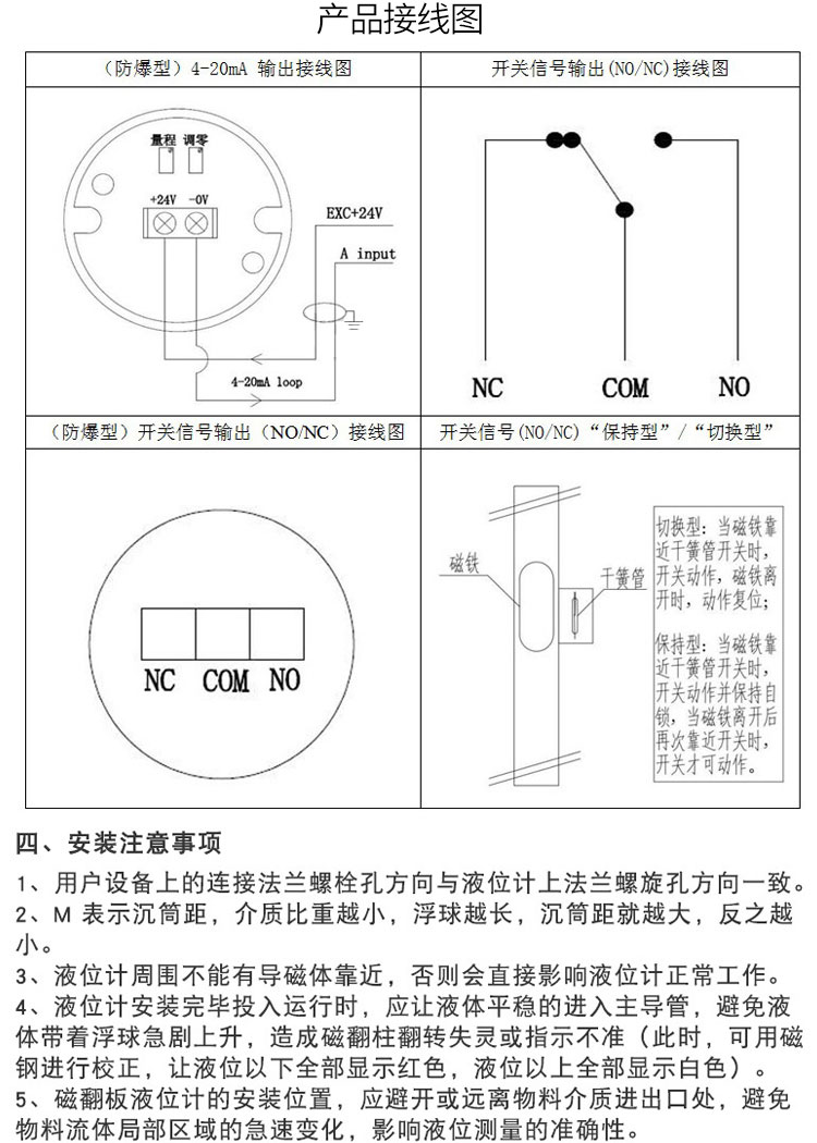 4. **校准:安装完毕后,可用配套的磁钢沿着指示器从头至尾走一遍,人为地将翻柱归位到正确的初始状态(**零位以下红色,零位以上白色)。