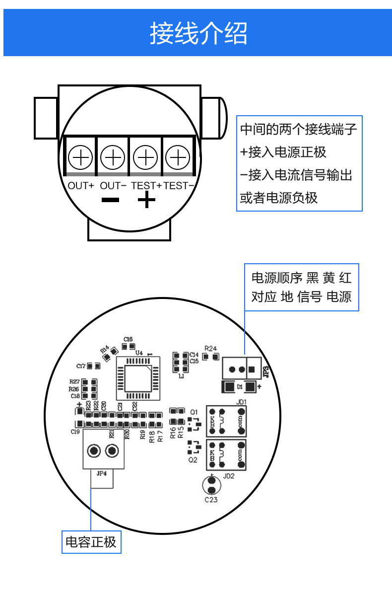 - 电容检测与变送部分:**安装在传感器顶部的电子仓内。它负责处理电容信号,进行温度补偿和线性校正,并输出**电信号。一些高端仪表具备现场显示、按键调试以及HART、Modbus等通讯协议功能 。