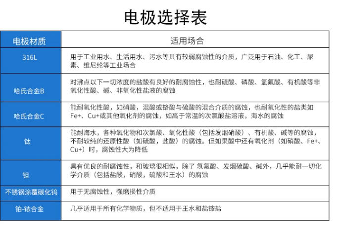 c、为适应不同介质测量的要求,传感器的衬里和电极材料可以有多种选择。