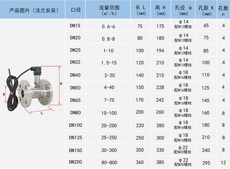 | 公称口径 | 管道式:DN4 ~ DN200;插入式:DN100 ~ DN2000 | |