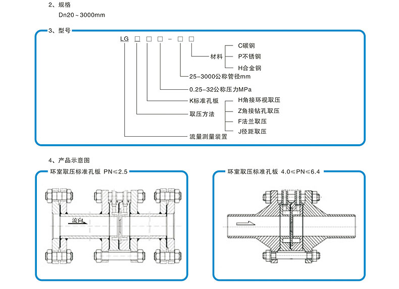 | 材质 | 孔板:不锈钢; 直管段:碳钢或不锈钢 | |