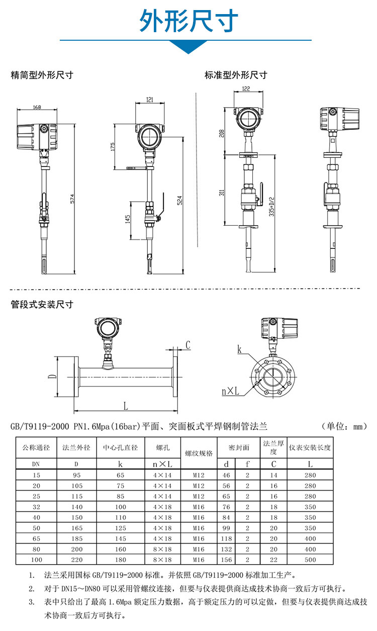 ①一体型插入式应插入至被测管路轴心,所以,测量杆长度视被测管径大小而定,定货时