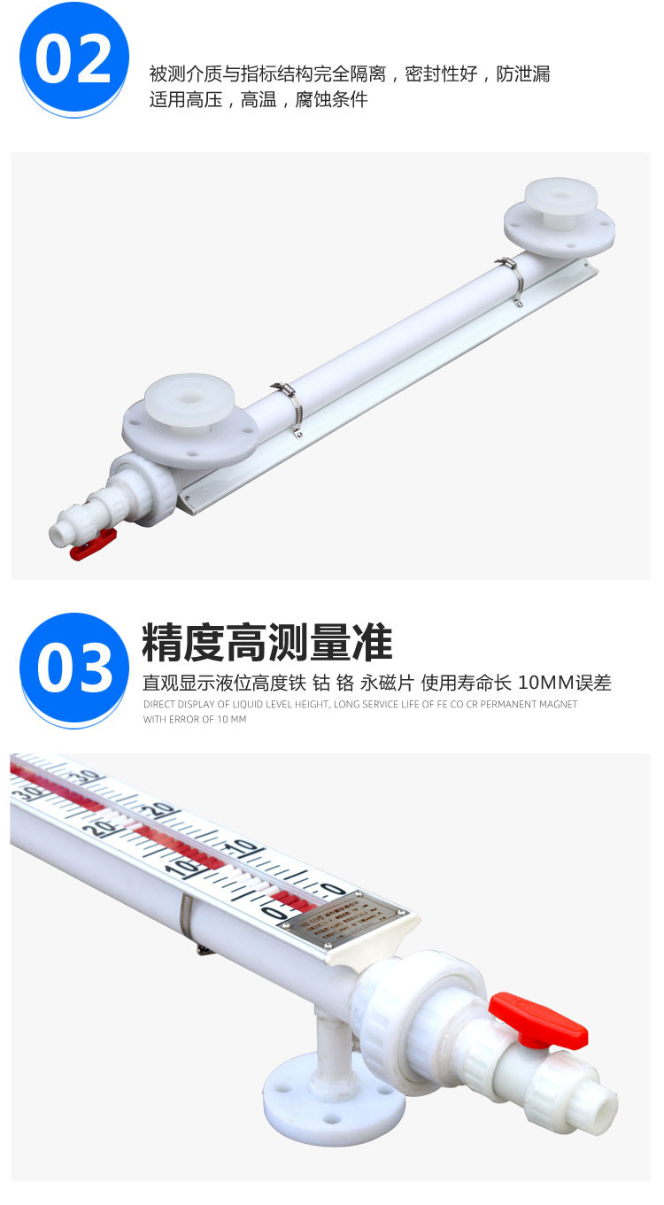| 工作原理 | 基于浮力、连通器和磁耦合原理,通过浮子驱动外部翻柱显示液位 。 | 无需电源,安全可靠 |
