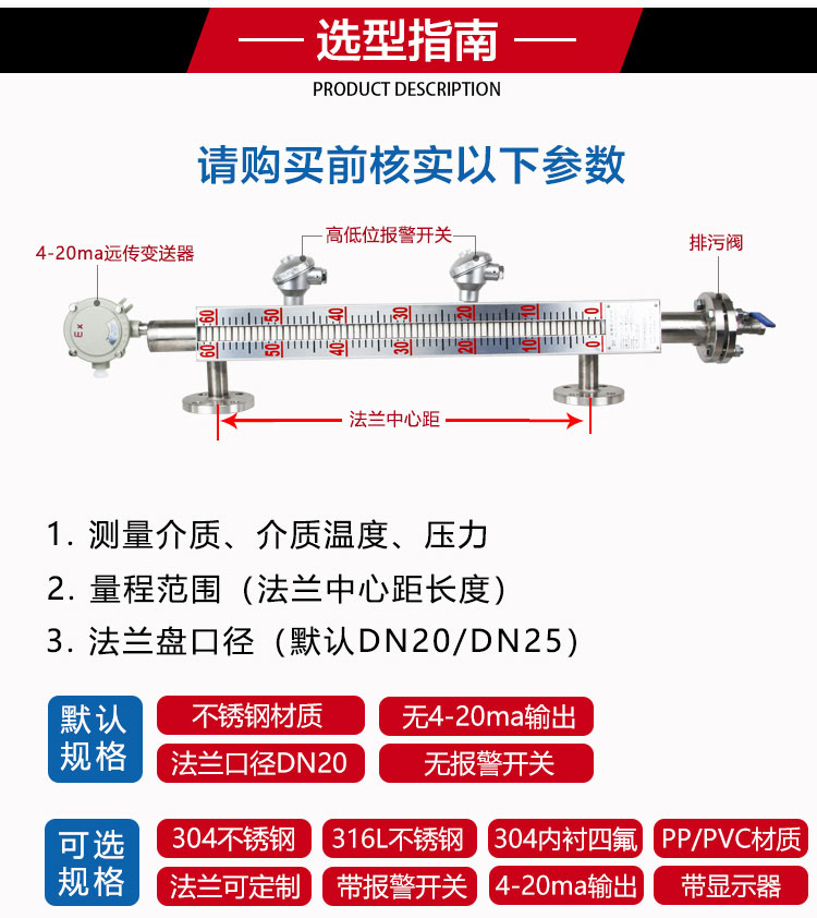 | 连接法兰 | DN20、DN25、DN50等,**有HG、GB、ANSI可选 |