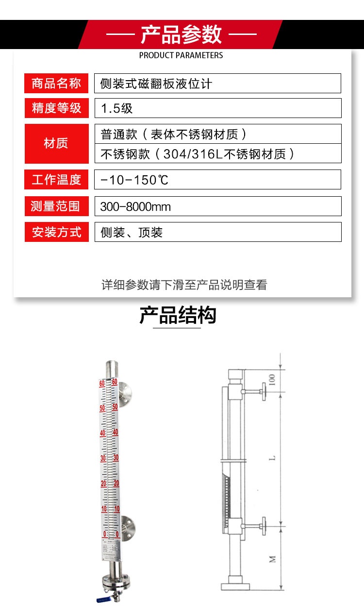 侧装式磁翻板液位计的参数因**和型号而异,以下为常见的通用技术规格参考: