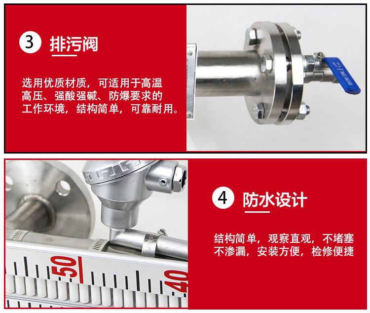 - 功能扩展性*:可方便地加装液位变送器(实现远传4-20mA信号)或液位开关(实现高低位报警),与PLC/DCS系统连接。