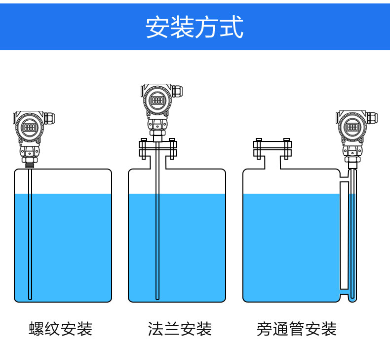 3. 量程与安装方式:根据容器高度选择杆式或缆式探头,并根据罐体接口选择合适的螺纹或法兰连接 。