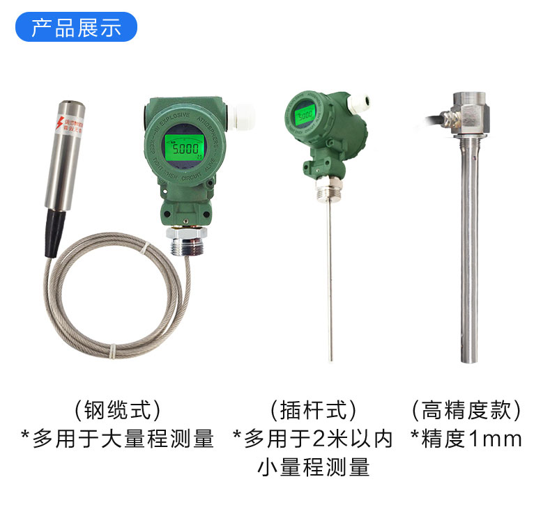 - 测量范围:0~0.2米 至 0~200米(缆式探头)