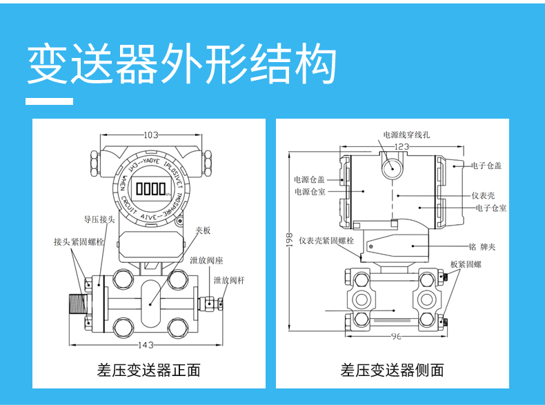 1. 压力传感器(δ室):**部件,包含隔离膜片、填充液(如硅油)和测量膜片。隔离膜片直接接触介质,将压力通过填充液传递至测量膜片。