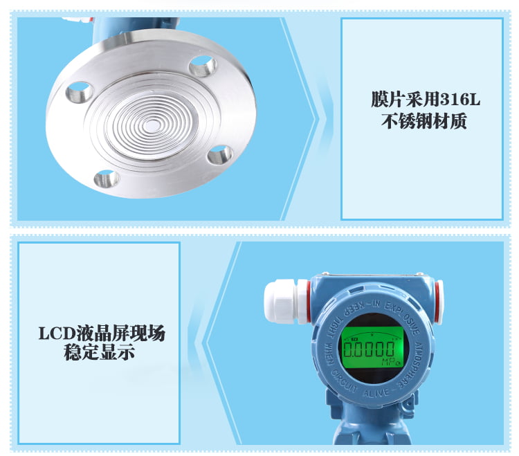 - 智能化功能:现代产品**配备带背光的液晶显示表头,支持就地按键调校(如零点迁移、量程设定),并支持HART、RS485等通讯协议,便于远程监控与调试。