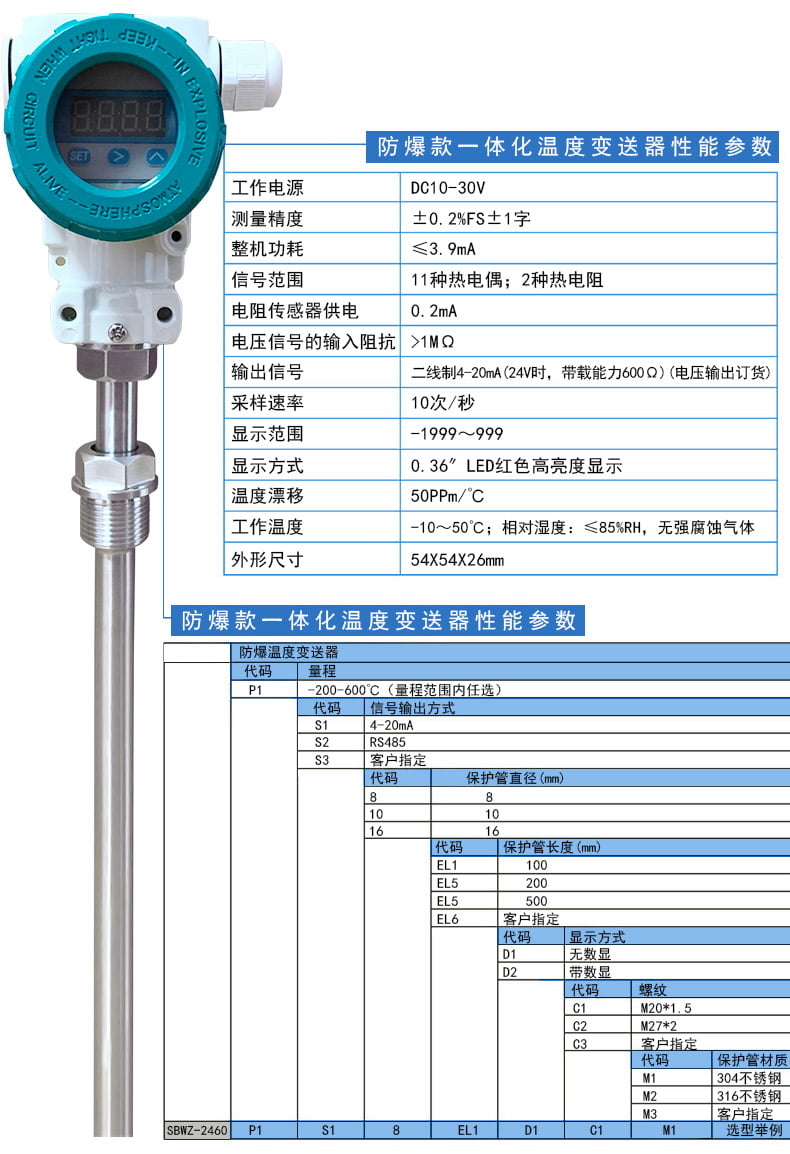 | 安装与连接 | 螺纹(M20×1.5, G1/2等),法兰;插入深度(EL),总长(TL) | 需考虑过程连接规格、保护管材质(304/316L)及是否需要**(隔爆/本安) |