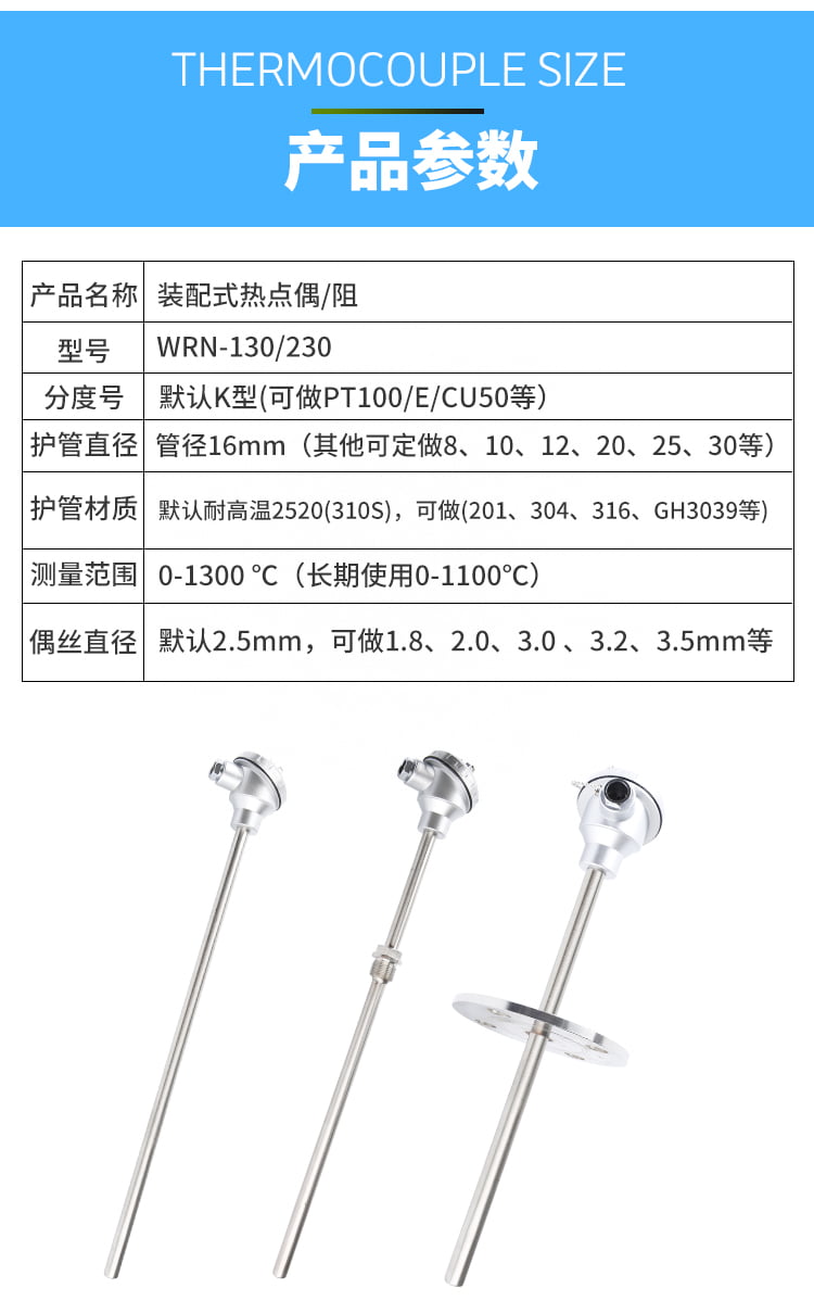 4. 响应速度:需要快速响应时,应选择铠装热电偶或细线径的热电偶,因为它们的热容量小。