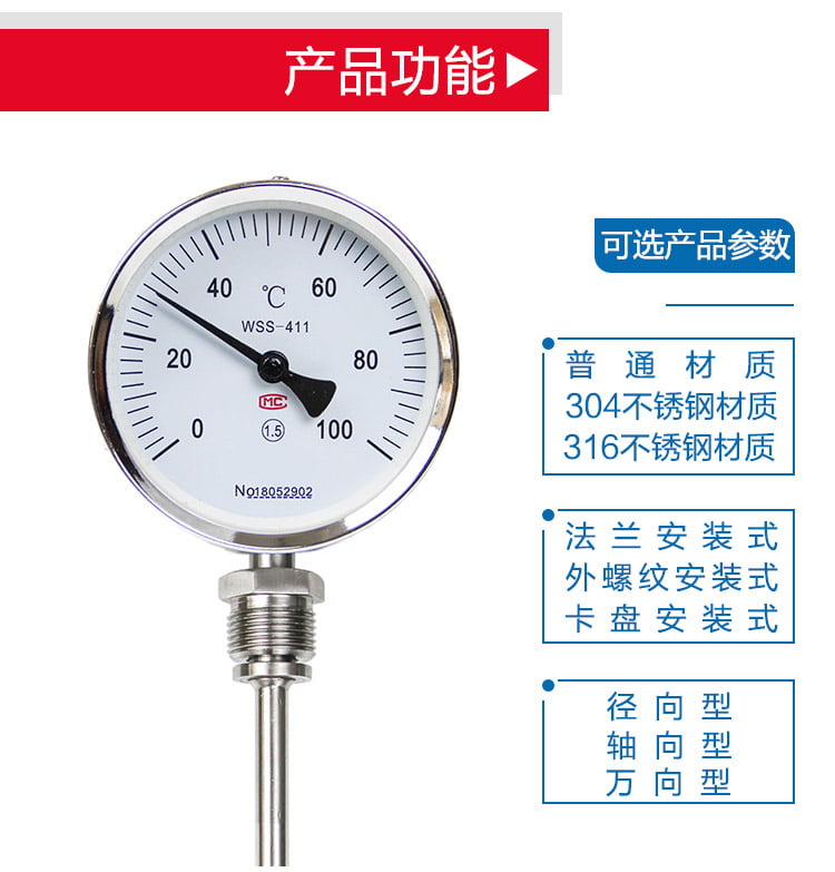 - 电接点功能:如果你需要在温度达到某个设定值时触发报警或自动控制,可以选择带“电接点”的型号(如WSSXN-4□□),它在耐震基础上增加了触点开关功能。