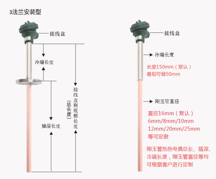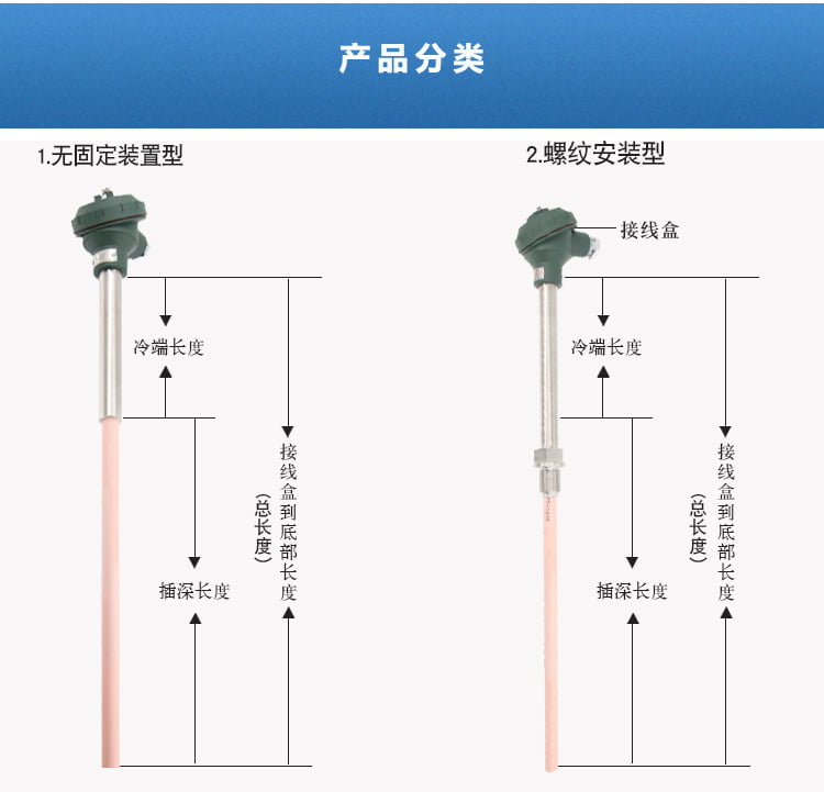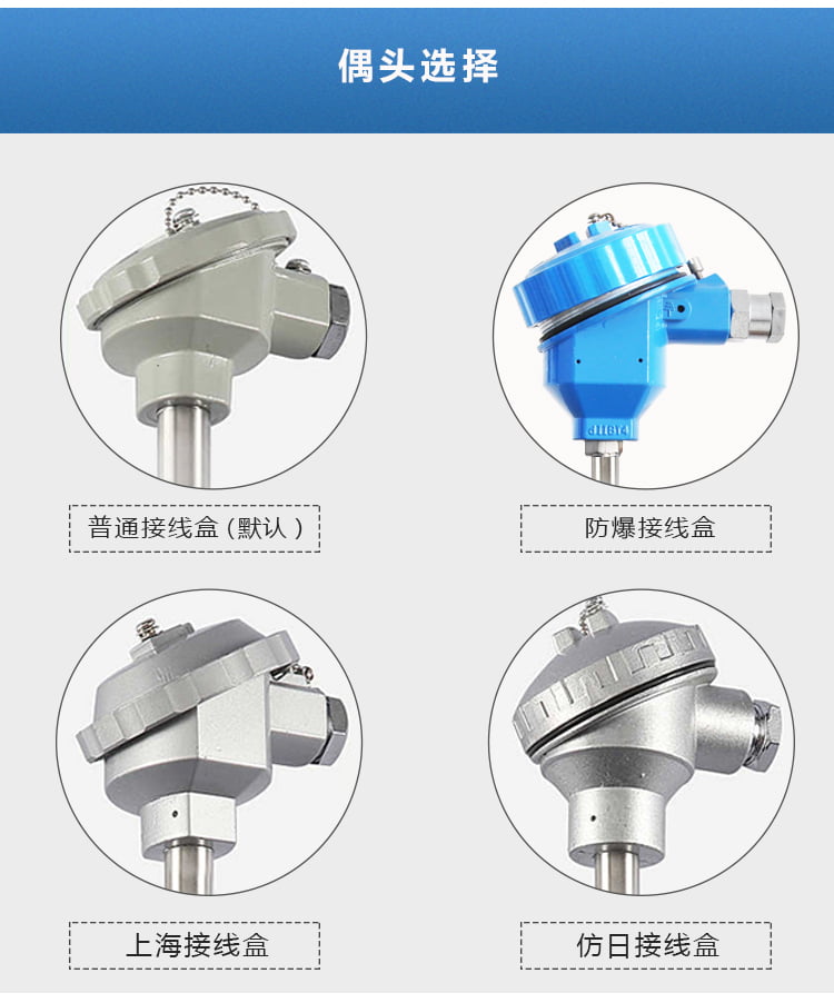 - 接线盒:用于连接热电偶和外部导线(如补偿导线)。